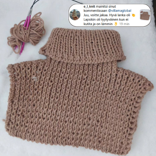 - Suositeltu puikkokoko: 5 mm neulepuikot tai virkkuukoukku