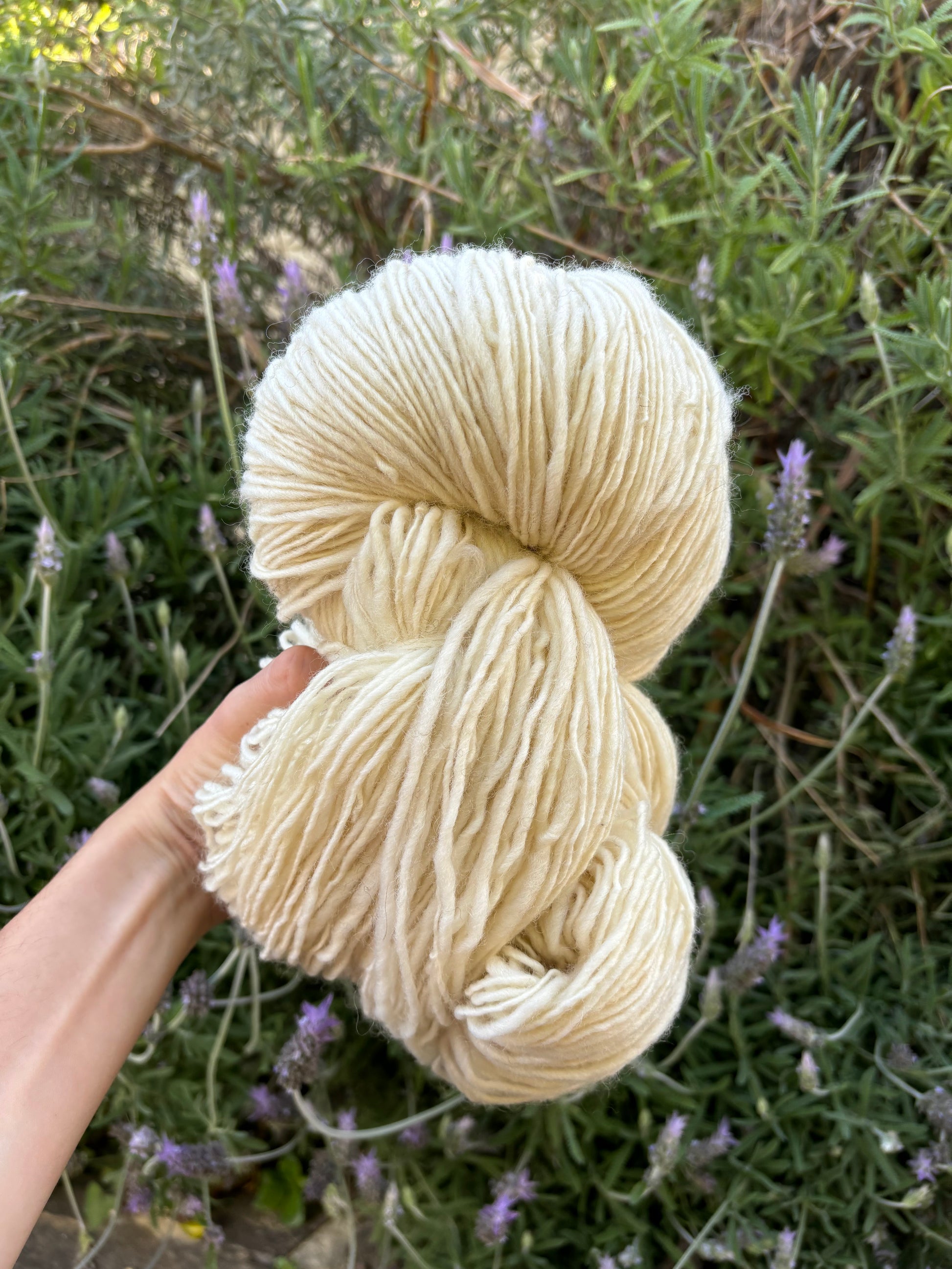 Tämä käsinkehrätty argentiinalainen villalanka on erittäin uniikki ja ainutlaatuinen lankatyyppi sen vaihtelevan rakenteen takia. Tämä ainutlaatuinen ja rakkaudella käsintehty villalanka on täydellinen neulomiseen tai virkkaukseen ja se soveltuu erinomaisesti myös kasvivärjäykseen. Lanka on valmistettu pehmeästä Argentiinalaisesta villasta perinteisellä värttinällä. Jokainen vyyhti on yksilöllinen – aivan kuten myös sinun luomuksesi siitä tulevat olemaan!