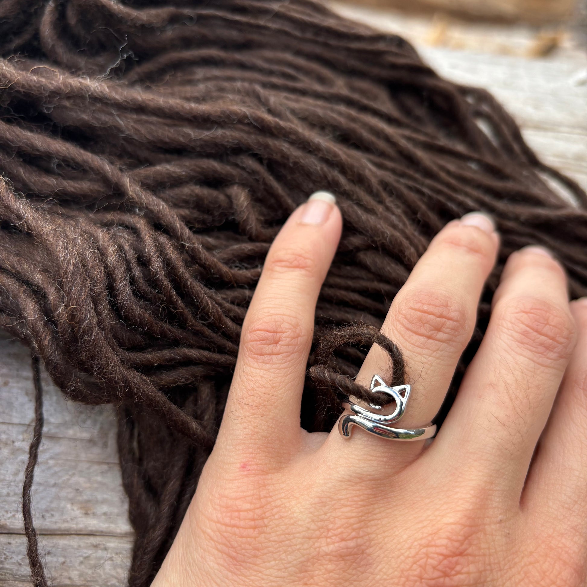 Tee käsityöprojekteistasi sujuvampaa tällä kauniilla ja käytännöllisellä hopeanvärisellä lankasormuksella. Kissankorvamuotoilu lisää ripauksen hupia ja tyyliä käsityöhetkiin!