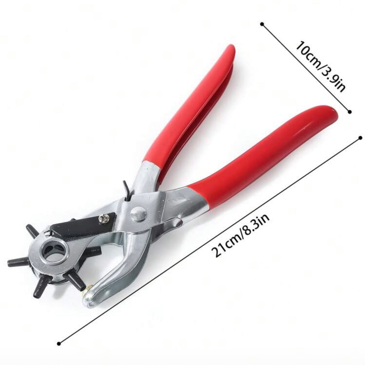 Skönheten i handgjort arbete ligger i detaljerna. Dessa prisvärda revolvertänger är avsedda för håltagning i läder, PVC-plast eller kartong. Hålstorleken justeras genom att vrida stanshjulet till önskat läge, och hålet görs genom att pressa ihop tången. Vid håltagning i läder och hårdare material krävs relativt mycket kraft.
